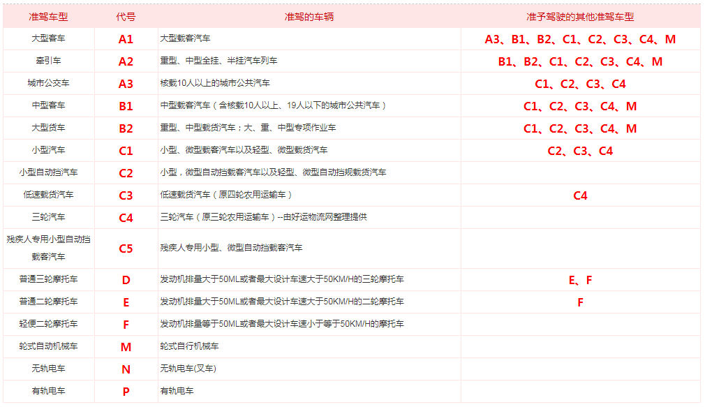 從表中我們可以看出,駕照的等級(jí)非常明確,以及允許駕駛的車型。
